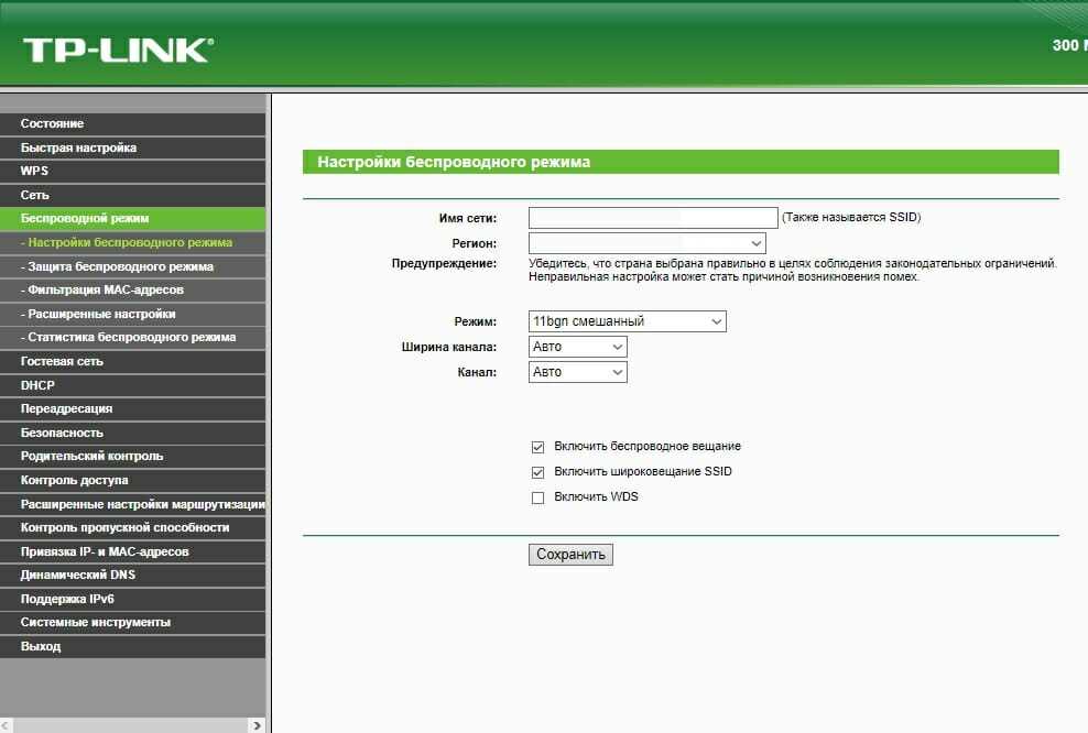 - теперь перейдите во вкладку «Беспроводной режим→Настройка беспроводного режима»;