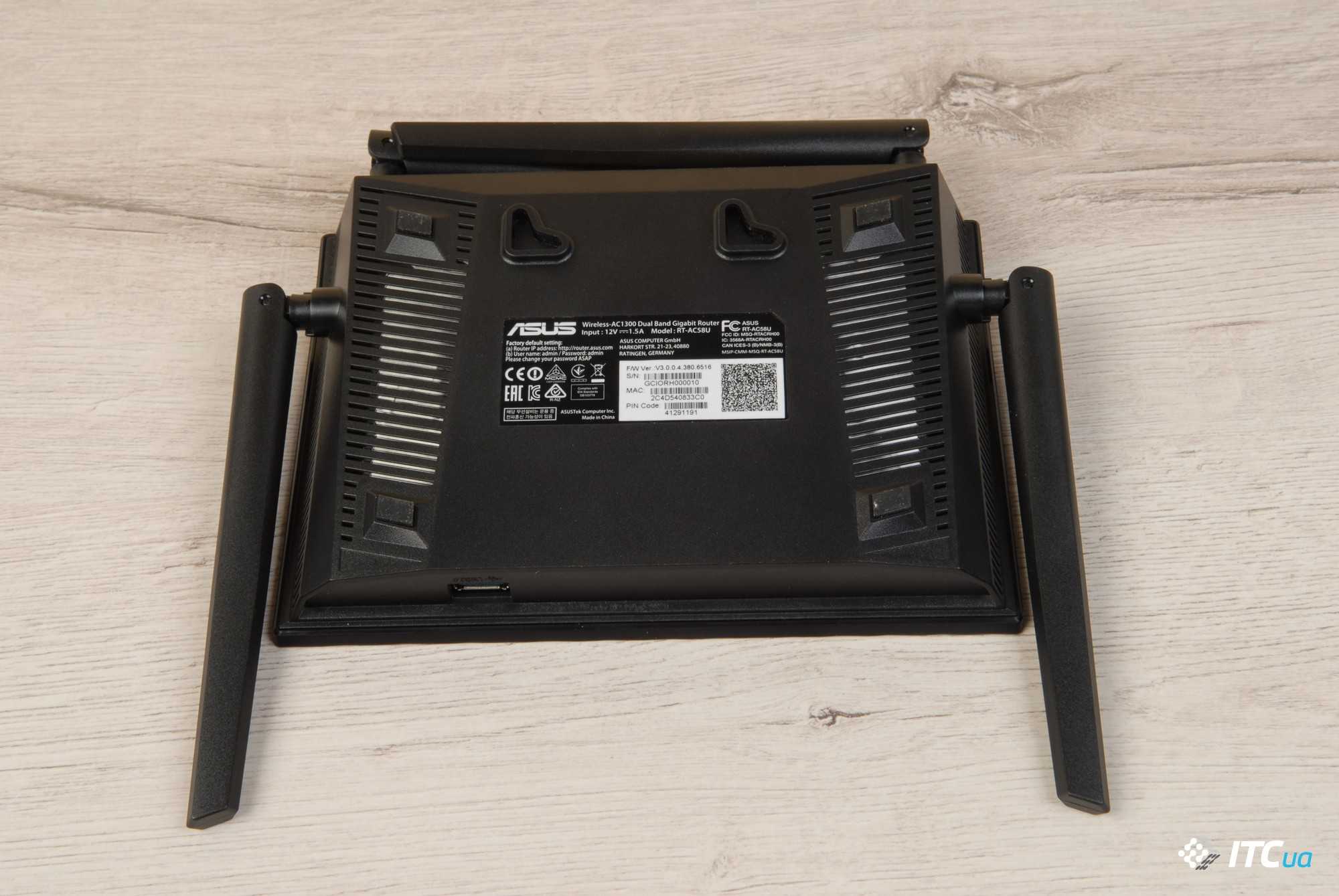 В остальном роутер выглядит хорошо. Сборка и качество пластика не вызывают никаких вопросов. Также отметим компактные размеры RT-AC58U — его можно сравнить с небольшими бюджетными устройствами, что однозначно стоит записать в достоинства модели, так как во многих случаях производители руководствуются правилом «чем производительнее роутер, тем больше он должен быть».